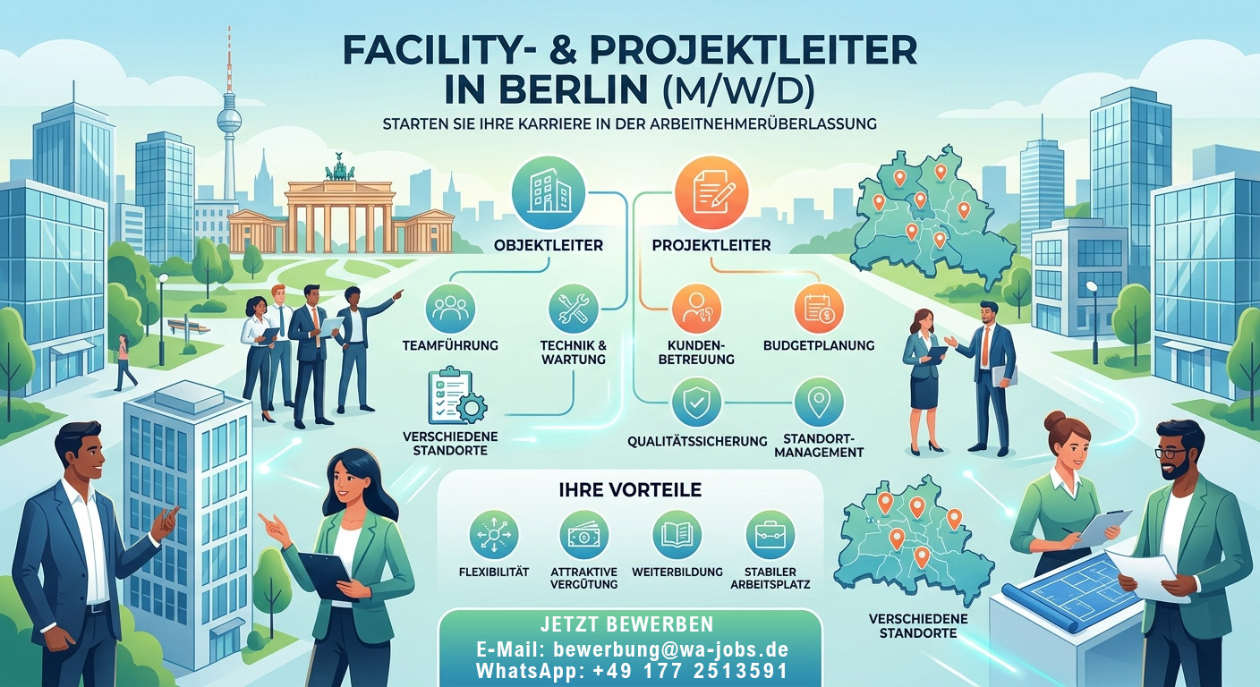 Für unseren Partner, ein renommiertes Facility-Management-Unternehmen, suchen wir zum nächstmöglichen Zeitpunkt mehrere Objektleiter bzw. Projektleiter (m/w/d) für verschiedene Standorte im Berliner Stadtgebiet.